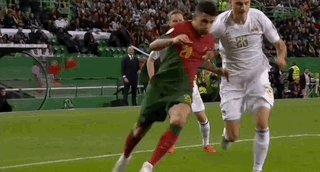 第57分钟,坎塞洛吊球入禁区,费利克斯胸部做球,C罗禁区内右脚弹射破门,可惜越位在先,进球无效。